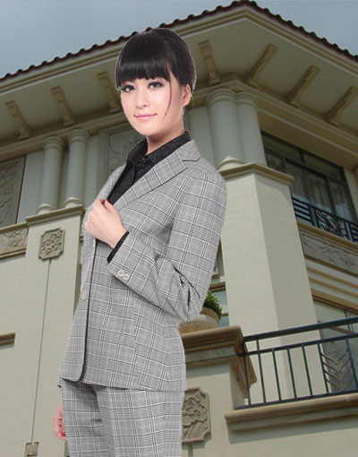二扣格子女套装